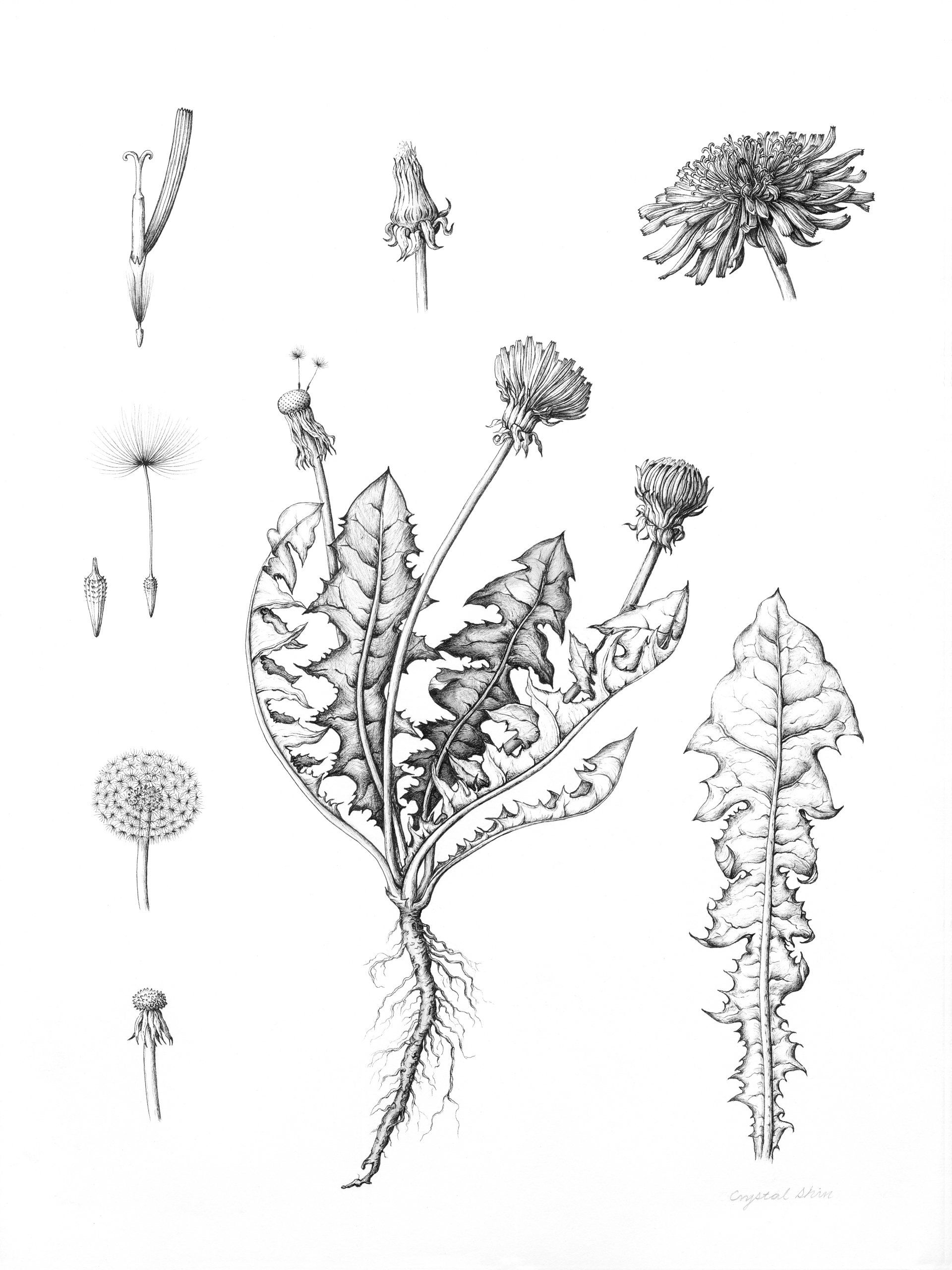 Common Dandelion. Pen and ink on paper. Size 16 in x 12 in. Giclee print available.