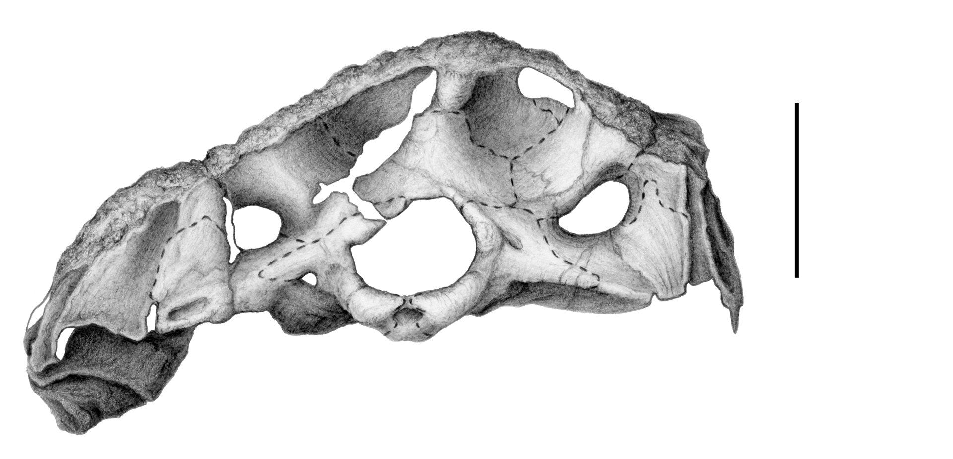 Dorsal cranium. Nshimbodon muchingaensis is mammalian precursor that lived 260 million years ago. Graphite on paper. Size 6.4 in x 3.6 in.