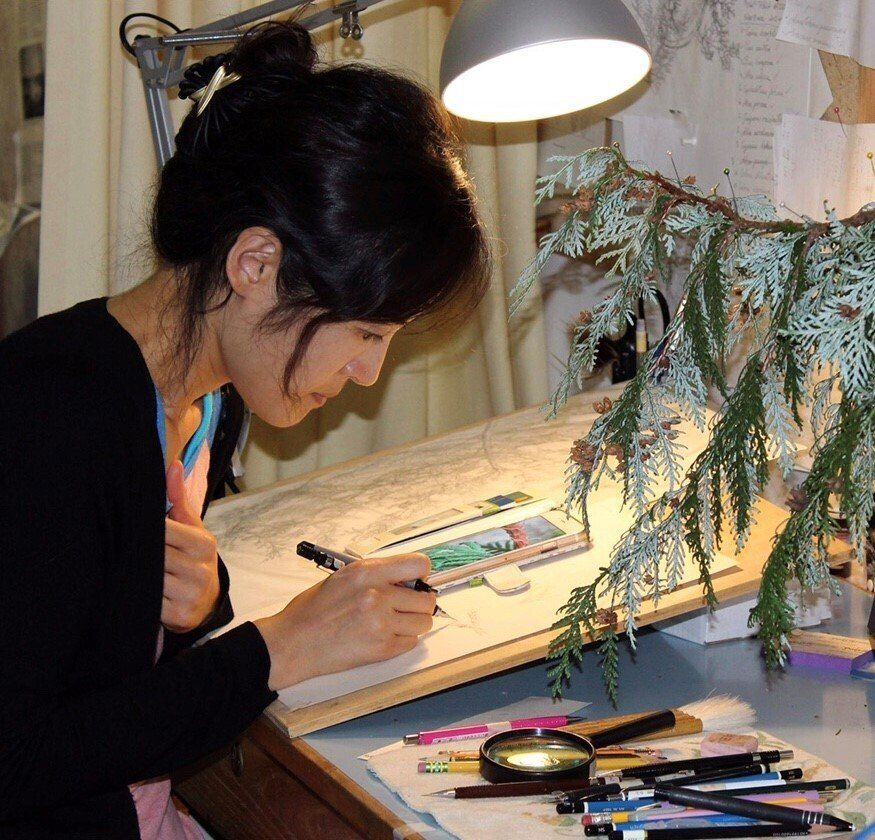 Born in Korea, Crystal Shin moved to Seattle in 2013. Discovering a passion for botanical art, she took classes with Kathleen McKeehen at the Gage Academy of Art, and the Center for Urban Horticulture before completing the Natural Science Illustration certificate program at the University of Washington. From 2015 to 2018, Crystal worked as a primary botanical illustrator on the second edition of “Flora of the Pacific Northwest” at the University of Washington Herbarium. For this project, she generated 882 new botanical illustrations in pen and ink, gaining a thorough knowledge and understanding of botany. Crystal has undertaken freelance illustration for botanists describing new species for their research, and has illustrated fossils for paleontologists at the UW Burke Museum.